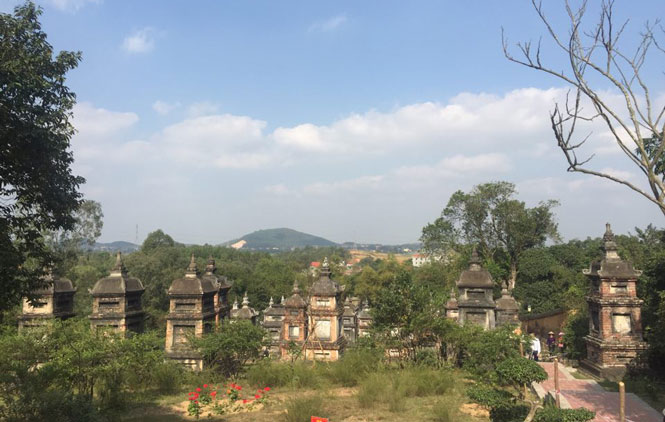 Nét độc đáo tạo nên dấu ấn của ngôi chùa cổ kính này chính là một vườn tháp đẹp và lớn mà ít ngôi chùa nào trên đất nước này có được. Gần 100 ngôi tháp bằng gạch nung xếp hàng, xếp lớp theo những quy định chặt chẽ của Thiền tông. Chỉ các tăng ni thuộc dòng Thiền Lâm tế được tàng lưu xá lị tro cốt tại đây. Tháp có bông sen trên ngọn là nơi lưu tro cốt của ni, tháp có bình cam lồ lưu tro cốt của tăng. Chùa Bổ Đà là một trong những trung tâm lớn của dòng thiền Lâm Tế nên hàng năm có rất đông tăng ni từ nhiều nơi về tham thiền.