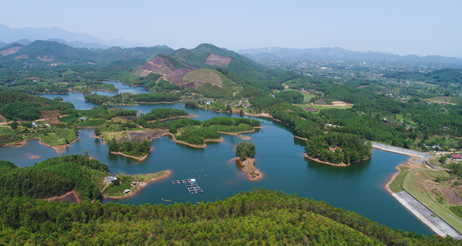 Từ trung tâm xã, đi theo con đường trục chính khoảng 3km là đến hồ Ghềnh Chè. Hiện ra trước mắt chúng tôi là hồ nước xanh trong, mát lành, trải rộng mướt tầm mắt. Trên mặt hồ có rất nhiều những hòn đảo lớn nhỏ, tô điểm cho “bức tranh” Ghềnh Chè thêm thơ mộng, kỳ vỹ. Đã từng sinh sống và gắn bó với hồ Ghềnh Chè gần 50 năm, ôngChu Văn Sơn, ở xóm Tiền Tiến chia sẻ: Năm 1984, hàng trăm công nhân thuộc Công ty Gỗ trụ mỏ Đông Bắc (Bộ Công nghiệp cũ) đã về đây, dùng sức người, sức máy ngăn đập, xây dựng hồ trữ nước với diện tích rộng gần 100ha, cung cấp nước tưới cho hàng trăm ha đất nông nghiệp ở 15 xóm của xã. Ngày nay, với tiềm năng của hồ Ghềnh Chè, chúng tôi còn phục vụ khách tham quan, du lịch vào những ngày nghỉ cuối tuần, góp phần phát huy thế mạnh du lịch của địa phương, tăng thêm thu nhập cho gia đình.