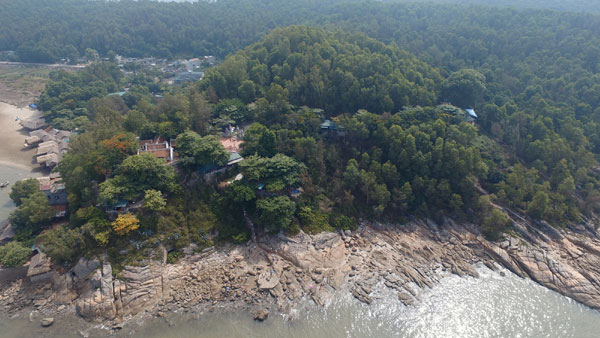 Cũng vào thời điểm này xuất hiện một loài thủy quái thường ăn thịt ngư dân ngoài biển, lúc lại vào làng sát hại dân lành, khiến nhiều người hoang mang, bỏ làng đi nơi khác kiếm sống. Để diệt bầy thủy quái giúp dân làng, chàng trai đã dùng thanh kiếm sắc rạch thân mình ra làm hai: một nửa cùng dân làng ra khơi đánh cá, nửa còn lại đứng ở đầu dãy núi Trường Lệ, từ đó bọn thủy quái không còn xuất hiện nữa. Dân làng ngày một đông vui, cá đầy khoang sau mỗi lần ra biển. Nhớ ơn chàng, dân làng xây đền trên núi Trường Lệ, gọi là Đền Độc Cước. Từ Đền Độc Cước, bạn có thể tận hưởng gió trời lồng lộng mang theo vị mặn của biển. Xa xa, những làng chài lấp ló sau rặng phi lao hát vi vu trong gió.