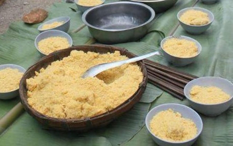 Bột ngô được nghiền kỹ trước khi đồ lên làm thành món mèn mén