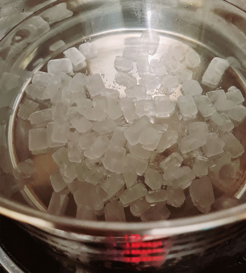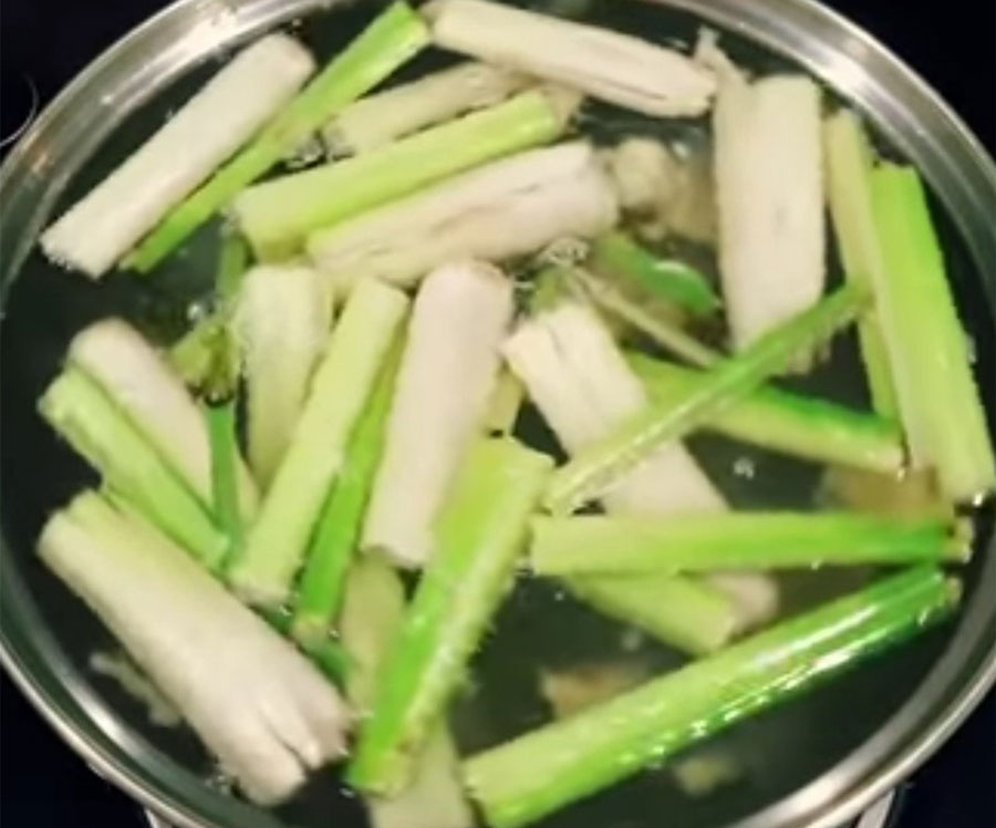 + Bước 2 - Nấu nước: Cho khoảng 1,5 - 2 lít nước vào đun, cho đường phèn vào cùng, đun đến khi sôi nước, đường phèn tan hết thì cho sả vào, đun sôi tiếp khoảng 3 - 5 phút rồi cho gừng vào, đun thêm 1 - 2 phút và tắt bếp. Lúc này, bỏ số muối nhỏ đã chuẩn bị vào và để nguội.
