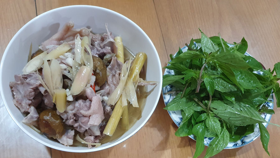 Món vịt om sấu thưởng thức cùng rau húng quế tạo nên một hương vị rất riêng, rất đặc trưng của Hà Nội.