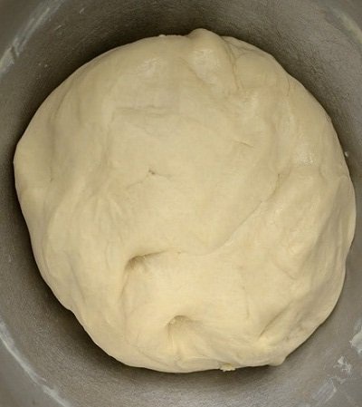 Cho hỗn hợp này vào thau bột trộn đều. Nhồi bột bằng lòng bàn tay đến khi bột dẻo, mịn không quá nhão hoặc không quá khô là được. Ủ bột khoảng 30 - 40 phút.