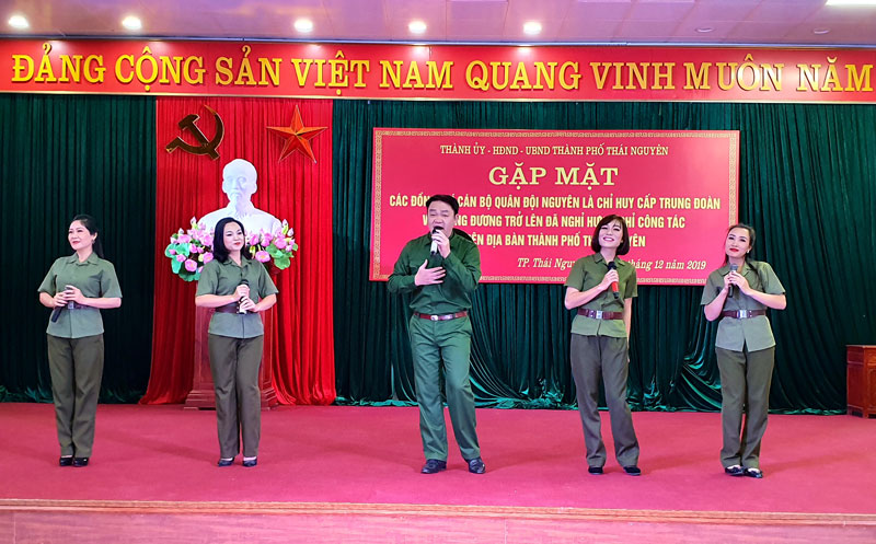 Tại buổi gặp mặt, lãnh đạo T.P Thái Nguyên đã đọc diễn văn Kỷ niệm 30 năm Ngày hội Quốc phòng toàn dân và 75 năm Ngày thành lập Quân đội Nhân dân Việt Nam. Diễn văn nhấn mạnh: Trải qua 75 năm xây dựng, chiến đấu và trưởng thành, Quân đội Nhân dân Việt Nam Anh hùng luôn hoàn thành xuất sắc nhiệm vụ cao cả bảo vệ Tổ quốc. Các thế hệ cán bộ, chiến sỹ nối tiếp lập lên những chiến công hiển hách, làm rạng rỡ lịch sử mấy ngàn năm dựng nước và giữ nước của dân tộc Việt Nam.