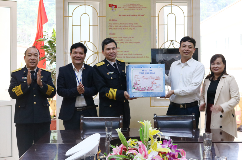 Tại UBND Thị Trấn Cát Bà, đại diện Bộ Tư lệnh Vùng 1 Hải quân đã thăm hỏi và gửi lời chúc tới cán bộ và nhân dân Thị trấn đón Tết Nguyên đán Canh Tý ấm áp, vui tươi.