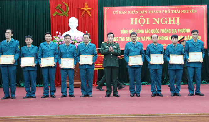 Ngày 24-12, UBND T.P Thái Nguyên tổ chức Hội nghị tổng kết công tác: Quốc phòng địa phương; giáo dục quốc phòng và an ninh; phòng không nhân dân năm 2020 và triển khai nhiệm vụ năm 2021. Dự Hội nghị có Đại tá Nguyễn Văn Đồng, Ủy viên Ban Thường vụ Tỉnh ủy, Chỉ huy trưởng Bộ Chỉ huy Quân sự tỉnh.