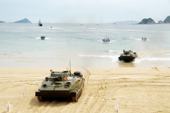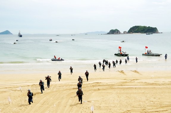 Cán bộ, chiến sĩ Lữ đoàn Hải quân đánh bộ 147, Vùng 1 Hải quân, luyện tập hiệp đồng chiến đấu. Ảnh: XUÂN THÌN