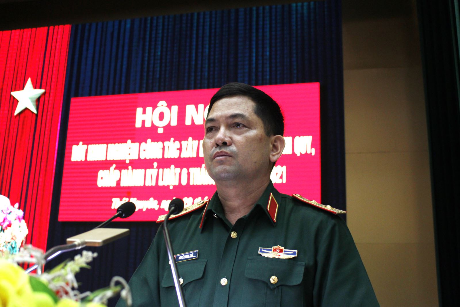 Để hoàn thành tốt nhiệm vụ 6 tháng cuối năm 2020; kịp thời khắc phục khâu yếu, mặt yếu trong xây dựng chính quy, quản lý kỷ luật, Trung tướng Nguyễn Hồng Thái, Ủy viên Trung ương Đảng, Tư lệnh Quân khu yêu cầu các cơ quan, đơn vị tiếp tục tập trung thực hiện 7 nội dung trọng tâm. Trước hết tiếp tục đẩy mạnh xây dựng chính quy trên các mặt; nâng cao chất lượng thực hiện các chế độ nền nếp chính quy; gắn huấn luyện với rèn luyện kỷ luật, chấp hành Điều lệnh Quân đội, pháp luật của Nhà nước; làm chuyển biến cơ bản nhận thức, ý thức tự giác chấp hành của cán bộ, chiến sĩ trong xây dựng chính quy, quản lý kỷ luật. Tăng cường các biện pháp quản lý quân nhân, đề cao trách nhiệm kiểm tra của chỉ huy các cấp đối với cơ quan, đơn vị, cán bộ thuộc quyền. Phát huy vai trò phối hợp của các cơ quan, các tổ chức quần chúng, giữa đơn đơn vị, địa phương và gia đình trong quản lý quân nhân...