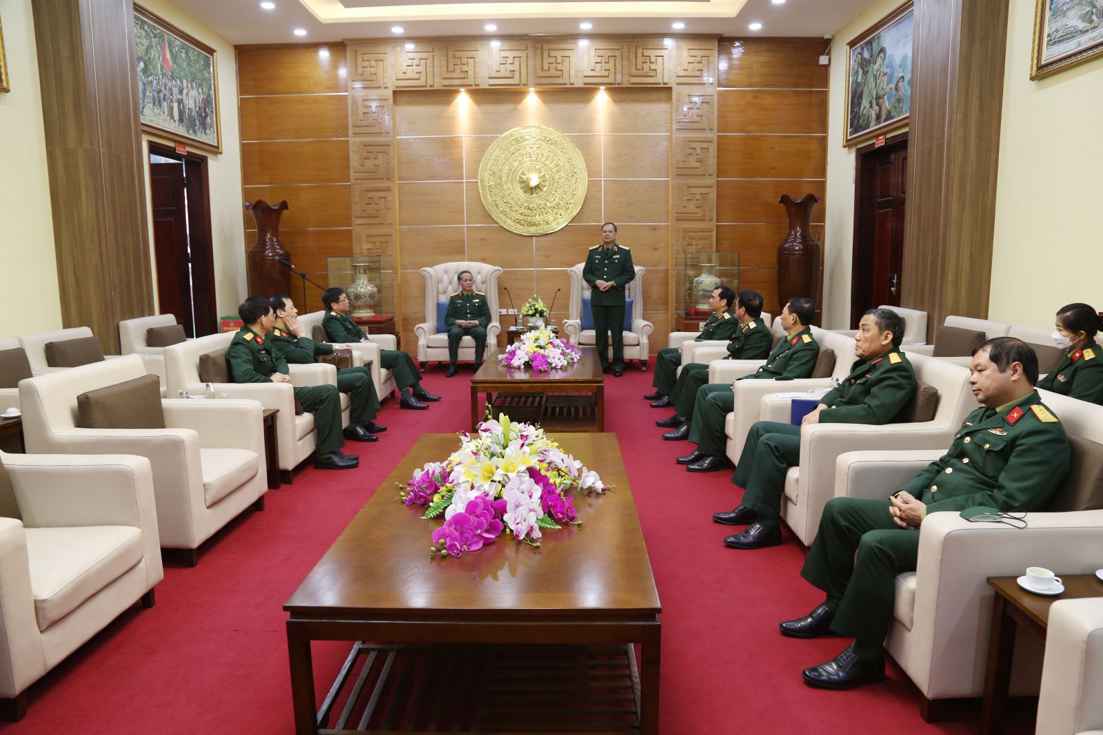 Trung tướng Cao Minh Tiến, Chính ủy Học viện Kỹ thuật quân sự trao đổi về công tác phối hợp giữa Học viện và Quân khu.