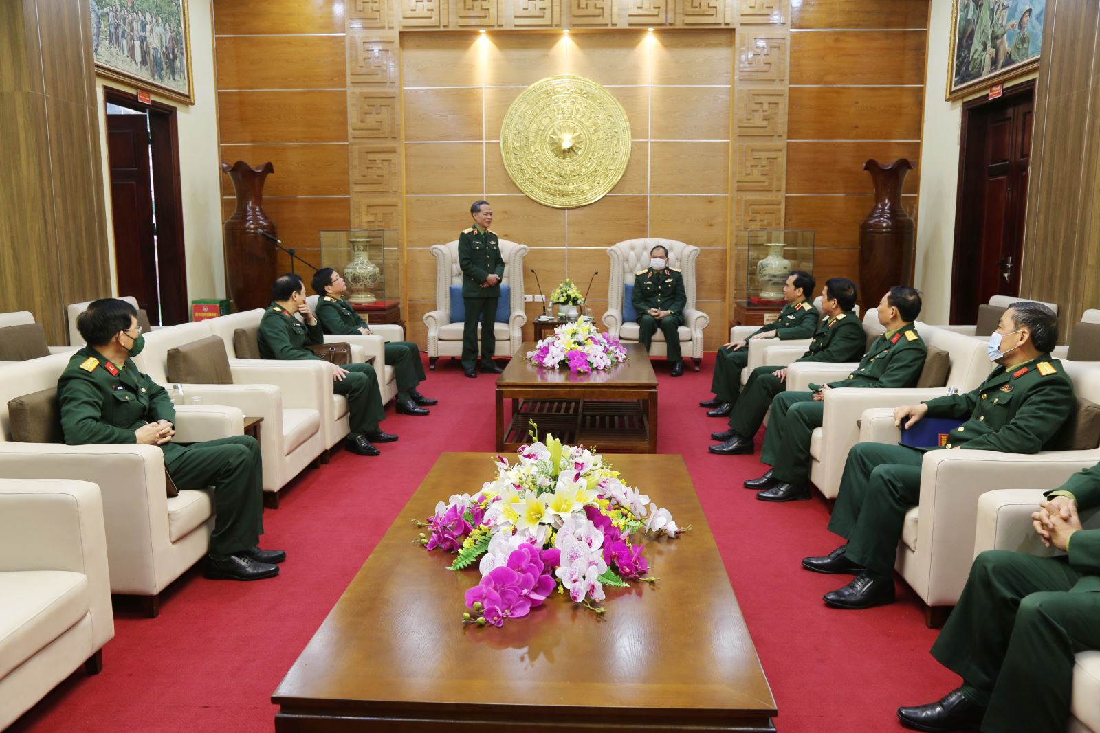 Trung tướng Cao Minh Tiến, Chính ủy Học viện Kỹ thuật quân sự trao đổi về công tác phối hợp giữa Học viện và Quân khu.
