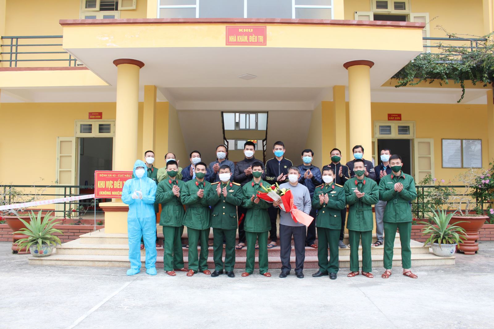 Chiều 28-2, tại Bệnh xá 43, Cục Hậu cần (Quân khu 1), 19 bệnh nhân COVID-19 điều trị khỏi bệnh đã được các y, bác sĩ làm thủ tục xuất viện.
