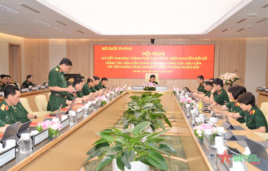 Chiều 23-5, tại Hà Nội, Bộ Quốc phòng tổ chức Hội nghị ký kết Chương trình phối hợp thực hiện chuyển đổi số công tác hậu cần quân đội giữa Tổng cục Hậu cần và Tập đoàn Công nghiệp - Viễn thông Quân đội (Viettel), giai đoạn 2022-2025, định hướng đến năm 2030.
