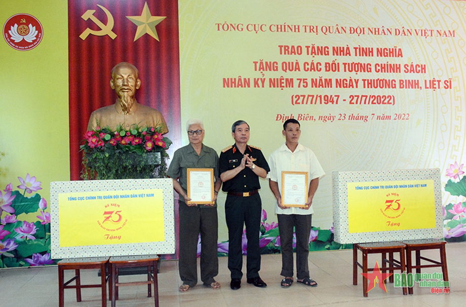 Dịp này, đoàn công tác Tổng cục Chính trị QĐND Việt Nam đã trao quyết định tặng nhà tình nghĩa cho ông Đoàn Xuân Hậu, tổ dân phố Phố Núi, thị trấn Chợ Chu và ông Nông Chính Lạc, xóm Làng Búc, xã Đồng Thịnh; tặng 35 suất quà tặng quà cho các gia đình chính sách; khám, chữa bệnh, tư vấn sức khỏe và cấp phát thuốc miễn phí cho 200 đối tượng chính sách, người có công trên địa bàn xã Định Biên.