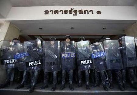 Sự việc diễn ra vài giờ sau khi hàng nghìn người thuộc phe áo đỏ xông vào Quốc hội, khiến các nghị sĩ phải trèo tường tháo chạy và sơ tán bằng trực thăng.