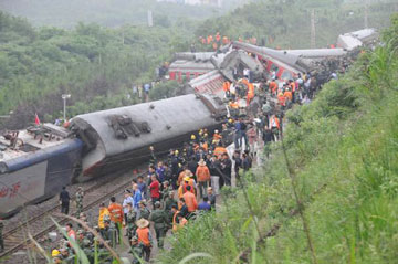 Theo Bộ Đường sắt Trung Quốc, tàu đã bị bắn tung ra khỏi đường ray do lở đất. Khi gặp nạn tàu đang đi từ Thượng Hải tới Khu du lịch Quế Lâm, thuộc Khu tự trị dân tộc Choang Quảng Tây, miền đông nước này.