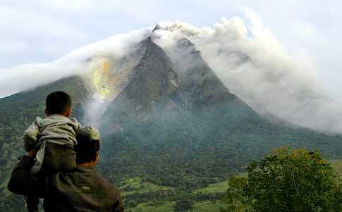 Khói bụi và tro nóng từ núi lửa này bốc cao lên không trung hơn 2 km, làm hơn 21 nghìn người sống quanh hàng chục ngôi làng gần chân núi phải sơ tán đến nơi an toàn.