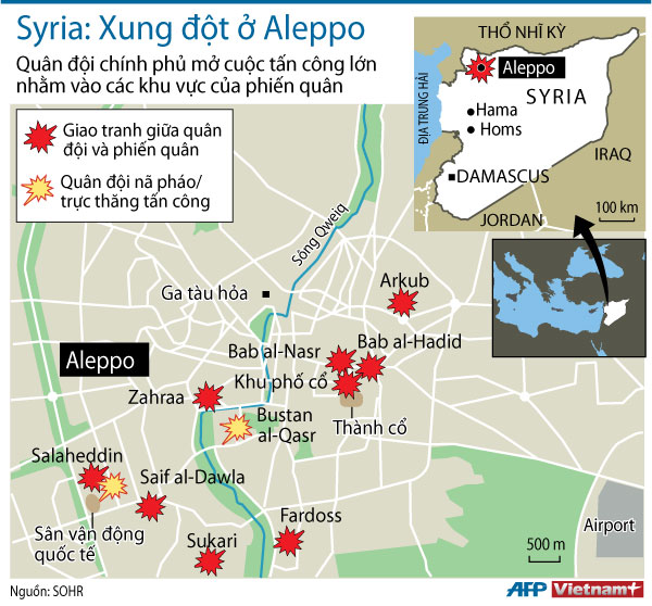 Cùng ngày, phát biểu trong chuyến thăm không báo trước tới nước đồng minh Iran, Ngoại trưởng Syria Walid al-Muallem khẳng định lực lượng nổi dậy chống chính phủ ở thành phố Aleppo "chắc chắn sẽ bị đánh bại".