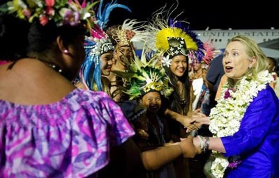 Mở đầu cho chặng dừng chân, Ngoại trưởng H.Clinton đã đến đảo Cook ở phía Nam Thái Bình Dương để tham dự Diễn đàn các quốc đảo Thái Bình Dương (PIF) lần thứ 43 với sự tham dự của đại diện đến từ 16 nước trong khu vực. Với sự kiện này, bà Clinton đã trở thành Ngoại trưởng Mỹ đầu tiên tham dự Hội nghị thượng đỉnh PIF. Theo các nhà phân tích, do không có trọng lượng chiến lược, các đảo quốc nhỏ Nam Thái Bình Dương đã không được ngành ngoại giao Mỹ chiếu cố nhiều trong thời gian qua. Vì vậy, chuyến công du của bà H.Clinton đến quần đảo Cook - một nước 11.000 dân với diện tích gộp lại của 15 hòn đảo không bằng diện tích của thành phố Washington - đã thu hút sự chú ý. Bởi lẽ quần đảo Cook có vị thế khá quan trọng về giao thương, buôn bán ở khu vực Châu Á - Thái Bình Dương. Nhưng quan trọng hơn cả, việc bà H.Clinton tham dự hội nghị PIF ở quần đảo Cook chỉ là sự kiện thứ yếu trong chiến lược chung của Mỹ, mà mục đích chính như ngầm khẳng định rằng, kể cả tại những nơi hẻo lánh nhất của vùng Thái Bình Dương, Mỹ vẫn có mặt. Cho nên sự hiện diện của Ngoại trưởng Mỹ tại quốc đảo này rõ ràng là những bước đi đầu tiên để Washington dần củng cố mối quan hệ ngoại giao và đồng minh của mình với các quốc gia khác trong khu vực.