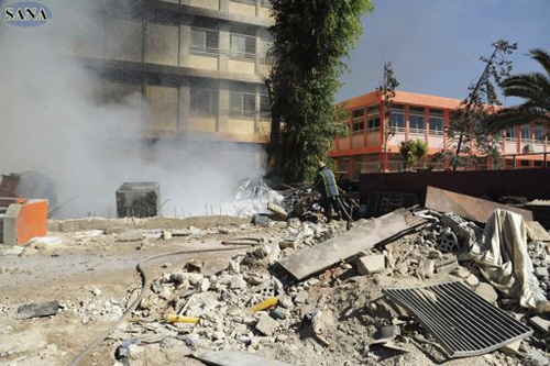 Kênh Truyền hình Nhà nước Syria đưa tin, sáng 26/9, 2 vụ nổ lớn xảy ra gần toà nhà Bộ Tổng tham mưu quân đội Syria ở trung tâm thủ đô Damascus. Các nhân chứng cho biết, đám cháy vẫn còn trong toà nhà quân đội và khói bốc cao trên quảng trường Umayyad gần đó.
