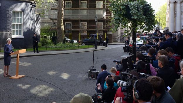 Trong tuyên bố ngày 18/4, Thủ tướng Anh khẳng định nước Anh cần tiến hành ngay cuộc tổng tuyển cử trước khi các cuộc thương lượng chi tiết về việc nước Anh rời EU (còn gọi là Brexit) bắt đầu, vì đây là cách duy nhất để bảo đảm ổn định chính trị trong nhiều năm tới.