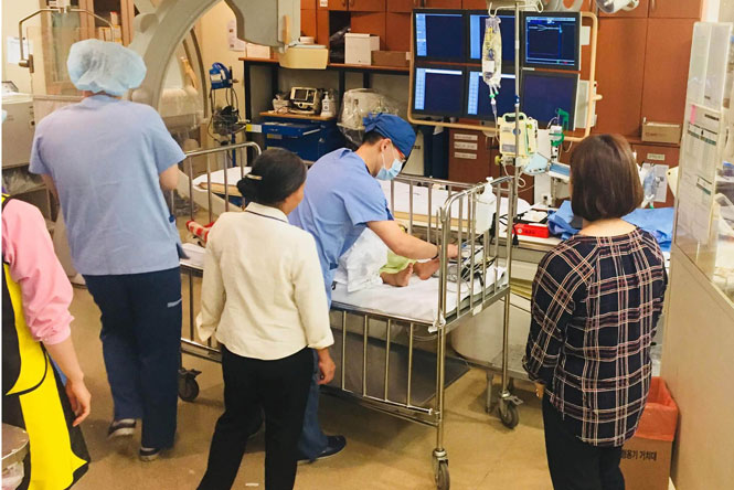 Giáo sư Song Jin Young - người phẫu thuật chính của kíp mổ cho biết: Cháu Toàn bị thông liên nhĩ tim, một trong những bệnh tim bẩm sinh hay gặp nhất, chiếm gần 30% các bệnh tim bẩm sinh. Để bịt lỗ hở trong tim của cháu Toàn, kíp mổ đã đặt một ống thông nhỏ từ tĩnh mạch đùi lên đến tim, dùng thiết bị đặc biệt đưa một miếng vá nhân tạo lên để bít lỗ thông liên nhĩ trong khi tim cháu Toàn vẫn đập bình thường.