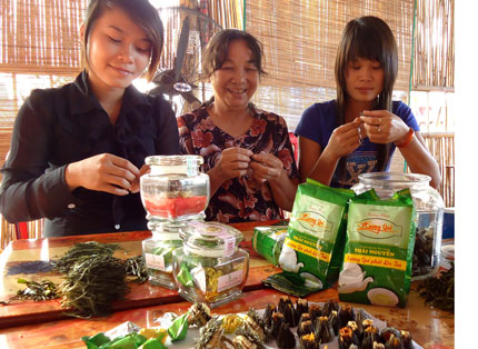 Doanh nghiệp tư nhân trà Hạnh Nguyệt là một đơn vị kinh doanh chế biến và xuất khẩu các sản phẩm về chè đóng gói trên địa bàn được thị xã hỗ trợ tổ chức 2 gian hàng trưng bày sản phẩm tại Liên hoan. Những ngày này, Doanh nghiệp cùng với Phòng Kinh tế thị xã đang gấp rút hoàn thiện công tác chuẩn bị cho 2 gian hàng này. Các nghệ nhân, công nhân của Doanh nghiệp được huy động tối đa để hoàn thành hàng trăm sản phẩm trà nghệ thuật có chất lượng cao, sạch và an toàn mang các thương hiệu như: Trà hoa nghệ thuật, hương quê phát lộc trà, Trà đặc sản, Trà hoa cúc, Trà mộc lan, Trà hoa hồng… để giới thiệu với đông đảo du khách đến với Liên hoan. Bà Nguyễn Thị Nguyệt, Giám đốc Doanh nghiệp cho biết: “Đến với Liên hoan lần này, Doanh nghiệp chúng tôi tập trung giới thiệu sản phẩm độc đáo nhất là Trà hoa nghệ thuật. Đây là một cơ hội để Doanh nghiệp quảng bá sản phẩm của mình, tìm kiếm đối tác, thị trường tiêu thụ”.