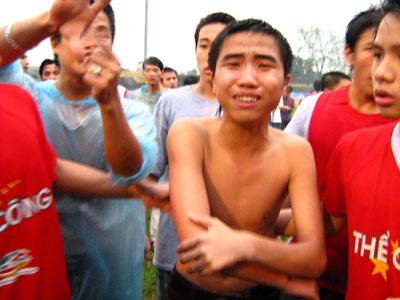 Một số CĐV nhanh chân chạy thoát, số khác bị "dính chưởng" lăn vật ra khán đài. Chúng tôi được chứng kiến tận mắt màn rượt đuổi phi nhân đạo này, nhưng lúc đó BTC sân Vinh đã quá "cầu toàn" và nói như ông Hồ Việt Trần, uỷ viên BTC sân, khi các CĐV Thể Công khản cổ kêu cứu trên khán đài, ông thản nhiên đáp: "Các anh cứ yên tâm", ông vừa dứt lời cũng là lúc tiếp tục một cây gậy giáng mạnh vào một CĐV đến từ Hà thành!