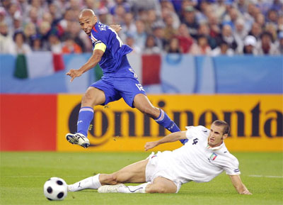 Hai trận đấu trước, Thuram là người đá cặp trung vệ với Gallas, nhưng hậu vệ kỳ cựu khoác áo Barca tỏ ra quá chậm chạp và thường xuyên mắc lỗi. Thế nên, Domenech đã có sự điều chỉnh ở cuộc chạm trán với Italia khi kéo Abidal vào trung lộ kèm cặp Luca Toni.