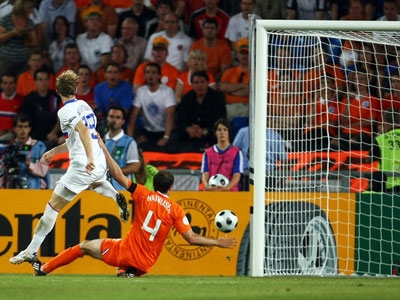 Không những thế, khung thành đội bóng áo cam tiếp tục bị "tra tấn" bởi các cầu thủ đối phương. Cú sút phạt tuyệt đẹp của Arshavin ở phút 56 đã loại van der Sar nhưng bóng đi chệch khung thành chỉ vài cm. Khi mà ngay cả những CĐV Nga còn chưa kịp nguôi tiếc nuối với pha bóng này thì "những chú gấu" đã khiến mành lưới của Hà Lan phải rung lên.