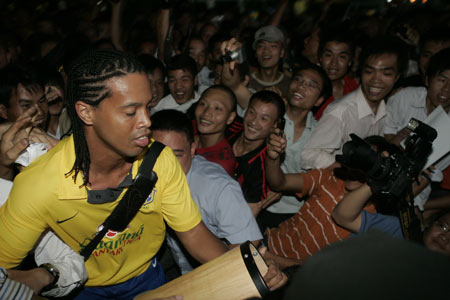Riêng ngôi sao Ronaldinho có lúc tưởng chừng như bị xô ngã. Ông Nguyễn Lân Trung, Phát ngôn viên đại diện cho VFF trong thành phần ra đón đoàn Brazil đi cạnh các cầu thủ cũng cùng cảnh bị chen lấn. Rất may các cầu thủ đã nhanh chóng ra tới xe ôtô về khách sạn.