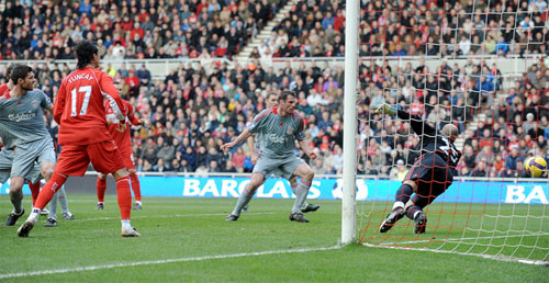 Alonso và Steven Gerrard đành phải quay sang phương án sút xa. Mặc dù vậy, các tình huống dứt điểm cuối cùng vẫn thiếu độ chuẩn xác. Trong thế trận chặt chẽ đó, Middlesbrough lại bất ngờ nhận được "món quà" từ Alonso.