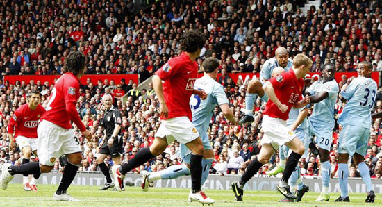 Trước sức kháng cự yếu ớt của "người hàng xóm" Man City, M.U dễ dàng giành chiến thắng 2-0 nhờ các pha lập công của Ronaldo & Tevez, qua đó đòi lại ngôi đầu BXH từ tay Liverpool, tối 10/5.
