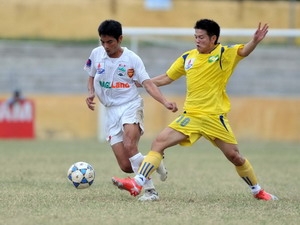 Đội bóng phố Núi liên tiếp gây sức ép sang sân đội chủ nhà. Tuy nhiên, trung vệ Huy Hoàng (3) chỉ huy hàng thủ không cho đội khách rảnh chân sút bóng nên các cơ hội đều trôi qua.