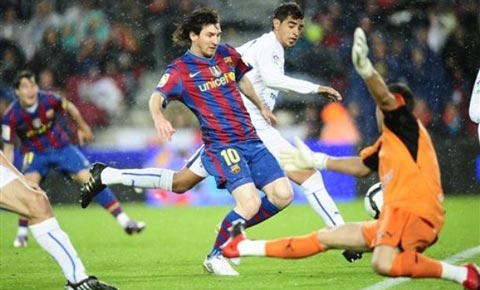 Đội bóng đang xếp thứ 18 đã cầm hòa Barca cho mãi tới phút 63, trước khi đội chủ sân Nou Camp ghi liên tiếp ba bàn ở nửa cuối hiệp hai nhờ công Bojan Krkic, Pedro Rodriguez và bàn thứ hai của Messi.
