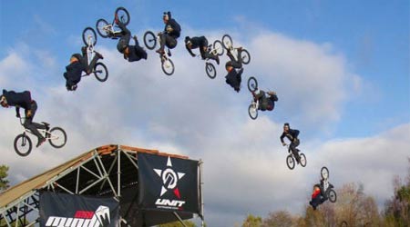 Chàng thành niên 24 tuổi cùng chiếc BMX (Bicycle Moto-Cross X, rất phổ biến ở châu Âu) đổ xuống một con dốc nhân tạo sâu thăm thẳm, trước khi vọt lên cao, lộn nhào ba vòng rồi tiếp đất hoàn hảo.