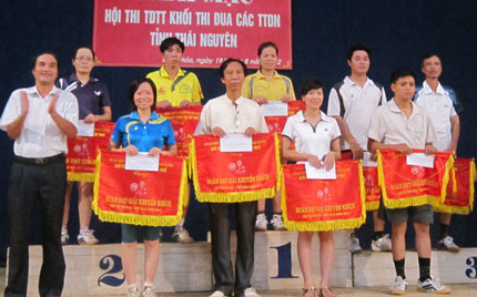 Thiết thực chào mừng Kỷ niệm 67 năm Cách mạng Tháng Tám và Quốc khánh 2-9, Ngày 19/8 tại Nhà thi đấu thể thao huyện Định Hóa, Khối thi đua các Trung tâm dạy nghề tỉnh đã tổ chức Hội thi Thể dục thể thao lần thứ 4