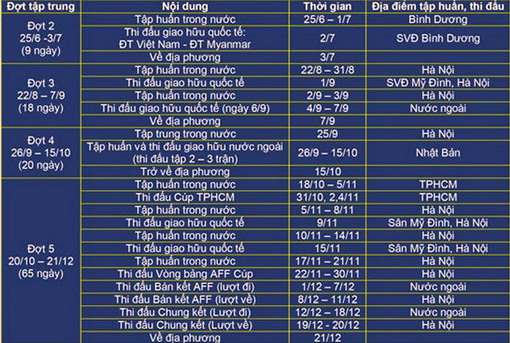 Chính xác là 112 ngày tập trung cho mục tiêu AFF Suzuki Cup vào cuối năm. Đó là quãng thời gian tập trung... siêu dài với hàng loạt các trận giao hữu, tập huấn và giải thi đấu ngắn ngày của đội tuyển quốc gia Việt Nam. Đặc biệt, lịch thi đấu của tuyển quốc gia Việt Nam có một quãng thời gian ngắn trùng với lịch thi đấu của U19 Việt Nam.
