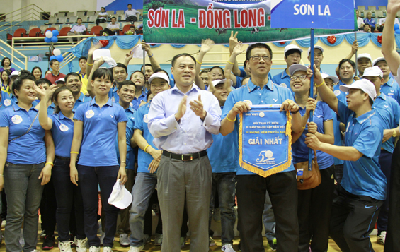 Ban Tổ chức trao giải Nhất cho đoàn Bảo Việt Sơn La.
