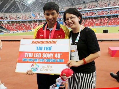 Công ty Cổ phần Thương mại Nguyễn Kim và Công ty Cổ phần Hàng không Vietjet đã trao thưởng nóng 1 màn hình LED Sony 40” và 1 vé máy bay khứ hồi chặng nội địa cho các VĐV giành HCV trong ngày hôm nay.