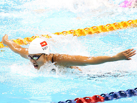Vòng loại 200m bơi bướm nữ: Nguyễn Thị Ánh Viên bơi ở lượt thứ 2, về đích thứ 3, thành tích 2 phút 19 giây 34. Trước đó, một VĐV khác của Việt Nam là Lê Thị Mỹ Thảo về đích thứ 2 lượt bơi thứ nhất thời gian 2 phút 20 giây 03.