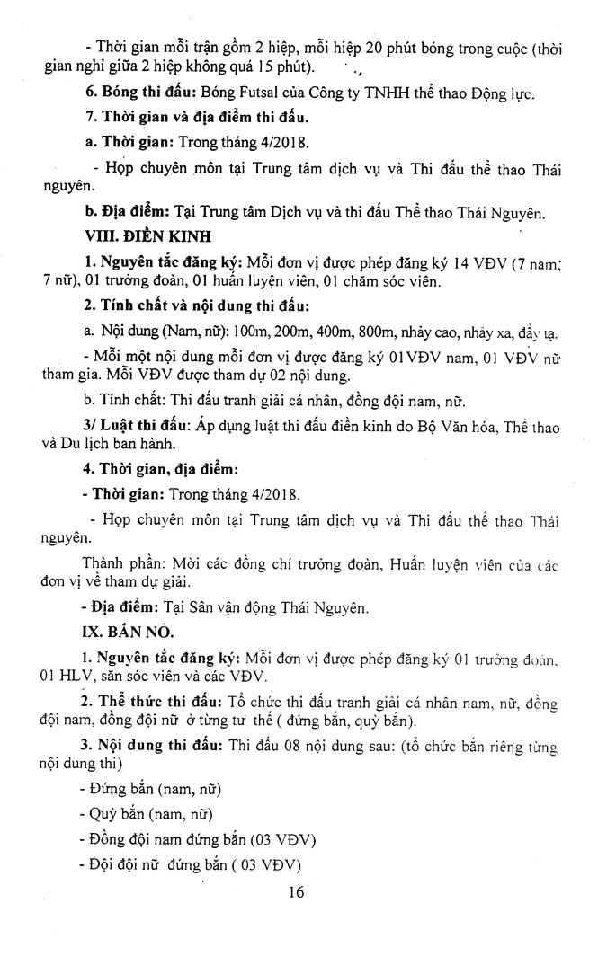 Theo thông tin từ Ban tổ chức Đại hội Thể dục thể thao (TDTT) tỉnh Thái Nguyên lần thứ VIII - năm 2018: Đến thời điểm này (10-3), công tác chuẩn bị cho Đại hội đang được triển khai tích cực. Hiện sân vận động tỉnh và các địa điểm thi đấu đang được khảo sát, sửa chữa, bảo đảm an toàn cho vận động viên tham gia thi đấu.