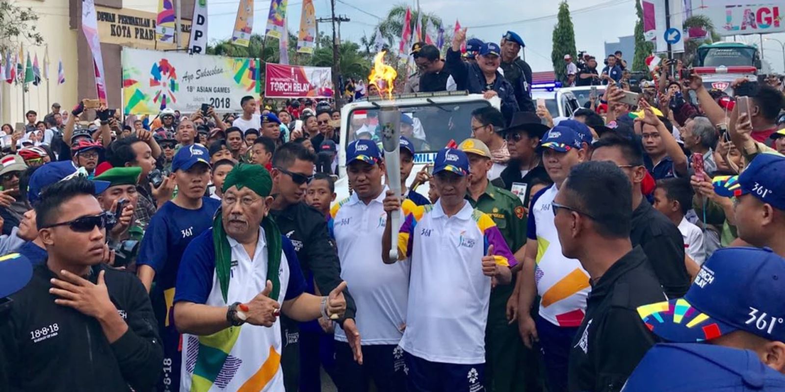 Ngọn lửa Á vận hội 2018 đến thành phố Prambulih (tỉnh Nam Sumatra) chiều tối ngày 6/8.