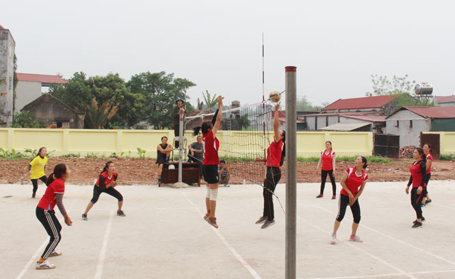 Ông Nguyễn Thế Giang, trưởng xóm Trung Tâm cho biết: Là xóm có đông dân cư với trên 200 hộ dân, diện tích sân nhà văn hóa không đủ đáp ứng nhu cầu của người dân, nên nhiều gia đình đã chủ động lập thành cụm, tự đầu tư mua trang thiết bị, dụng cụ để chơi bóng chuyền, cầu lông. Chính vì vậy, việc tuyển chọn hạt nhân và thành lập các đội bóng chuyền, bóng đá, cầu lông của xóm rất thuận lợi. Hằng năm, xóm thường xuyên phát động phong trào thi đua trong khu dân cư, tổ chức thi đấu, giao lưu với các xóm khác. Trong Hội truyền thống năm nay, xóm chúng tôi tham gia ở tất cả các nội dung: bóng đá, bóng chuyền nam, nữ, kéo co… và nội dung nào cũng đều đạt giải cao.