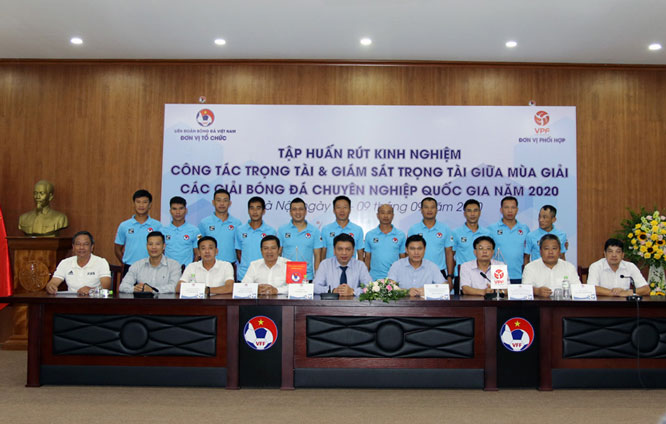 Chiều 6-9, tại trụ sở Liên đoàn Bóng đá Việt Nam (VFF), sau khi hoàn tất công tác kiểm tra y tế, các giám sát, trọng tài đã bước vào chương trình tập huấn rút kinh nghiệm giữa mùa các giải bóng đá chuyên nghiệp quốc gia 2020 đợt 1, diễn ra từ nay đến ngày 9-9.