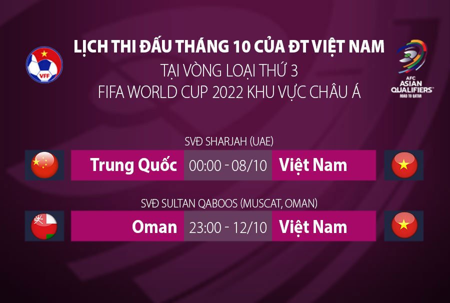 Theo lịch thi đấu mới nhất do AFC công bố, đội tuyển Việt Nam sẽ có trận đấu gặp đội tuyển Trung Quốc tại Các Tiểu Vương quốc Ả rập Thống nhất (UAE) vào lúc 0 giờ ngày 8/10. Cả hai đội đều đã có hai trận thua trước đó, vì thế trận đấu tiếp theo sẽ rất căng thẳng. Sau đó 5 ngày, đội tuyển Việt Nam sẽ tiếp tục có chuyến làm khách trên sân của đội tuyển Oman.