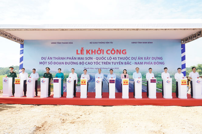 Sáng 30-9, Thủ tướng Chính phủ Nguyễn Xuân Phúc dự lễ khởi công dự án Mai Sơn – Quốc lộ 45 tại xã Hà Long, huyện Hà Trung, tỉnh Thanh Hóa. Cũng trong hôm nay, 2 dự án khác của tuyến cao tốc quan trọng này được khởi công là đoạn Vĩnh Hảo-Phan Thiết tại tỉnh Bình Thuận và đoạn Phan Thiết-Dầu Giây tại tỉnh Đồng Nai.