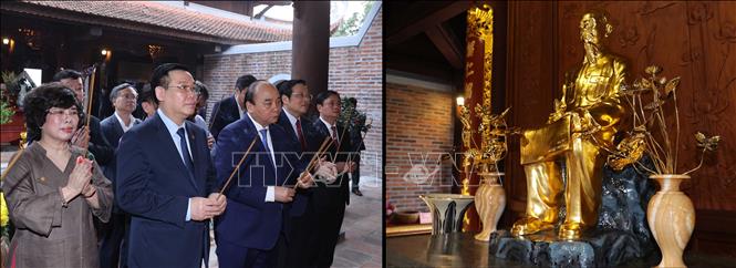 Thủ tướng Nguyễn Xuân Phúc dâng hoa, dâng hương Đền Chung Sơn, nơi thờ Gia tiên Chủ tịch Hồ Chí Minh tại xã Kim Liên, huyện Nam Đàn. Ảnh: Thống Nhất/TTXVN
