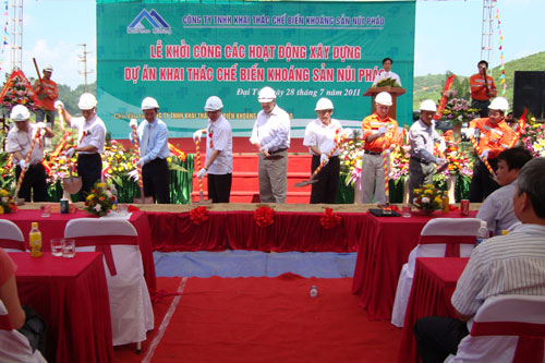 Một năm sau ngày tái khởi động, với những bước tiến quan trọng trong nhiều hoạt động, đến nay, Công ty THNH Khai thác và Chế biến Khoáng sản Núi pháo (NuiPhao Mining) đã giải phóng được hơn 90% mặt bằng, lo đủ vốn, thiết bị công nghệ để bắt đầu thi công các công trình trọng điểm. Ngày 28-7, tại xóm 2, xã Hà Thượng (Đại Từ) NuiPhao Mining đã tổ chức Lễ khởi công các hoạt động xây dựng (ảnh).