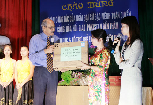 Nhân chuyến công tác tại Thái Nguyên, ngài Đại sứ Shahid M.G. Kiani đã đến thăm trường Giáo dục và Hỗ trợ trẻ em thiệt thòi tỉnh. Tại đây, ngài Đại sứ đã tặng Nhà trường 1 bộ máy vi tính trị giá 12 triệu đồng. Phát biểu với thầy, trò Nhà trường, ngài Đại sứ cho biết rất cảm động trước công việc của các thầy, cô giáo đồng thời mong muốn món quà sẽ phát huy giá trị giúp các em học sinh có thêm điều kiện tiếp cận với công nghệ thông tin.