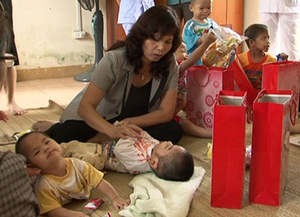 Đoàn đã tặng 18 suất quà cho 18 cháu là trẻ em mồ côi, khuyết tật và các cháu mắc bệnh hiểm nghèo bị bỏ rơi, với tổng trị giá gần 2 triệu đồng.